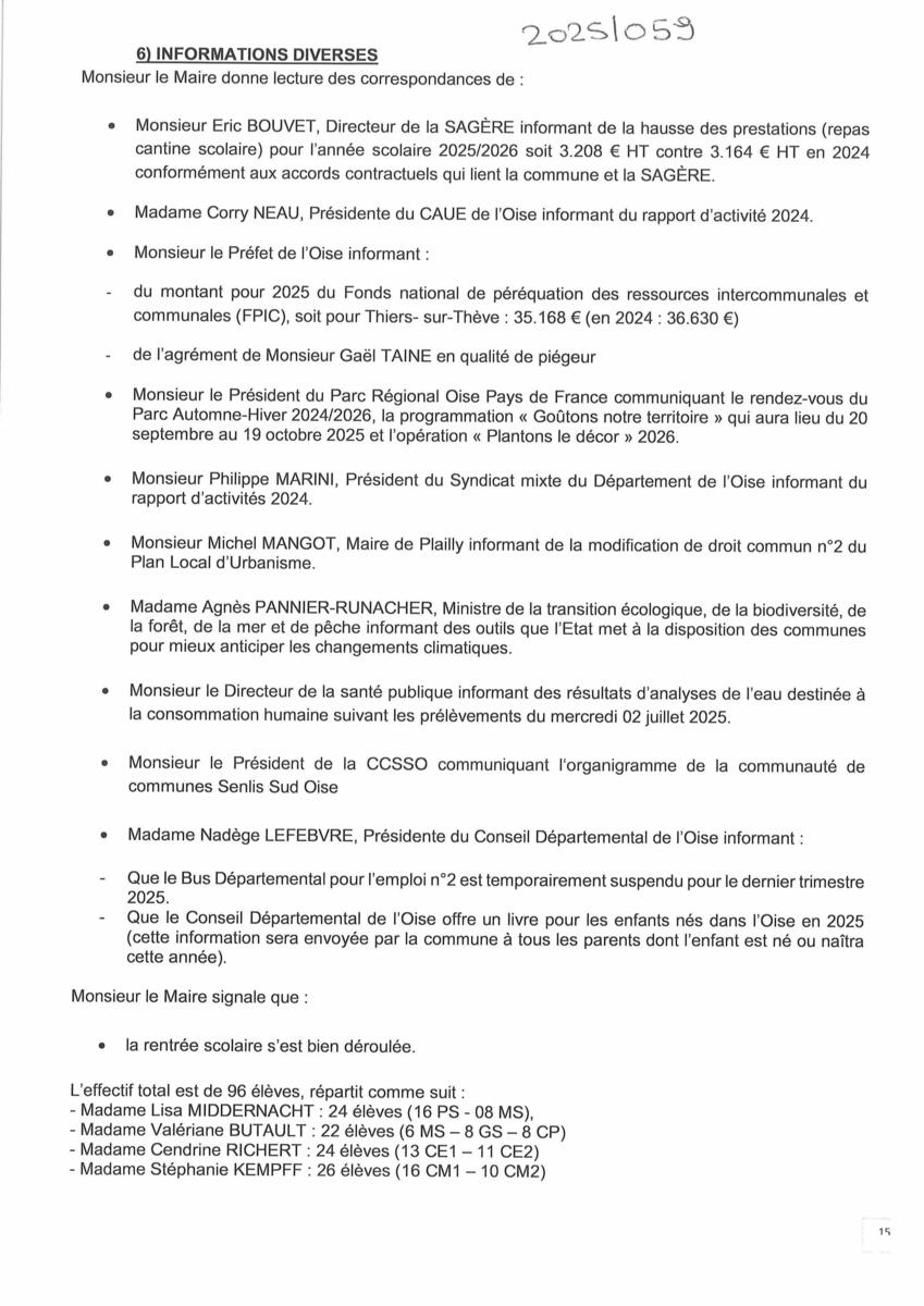 Votre mairie / Actualités / PROCES-VERBAL - RÉUNION CONSEIL MUNICIPAL 17 SEPTEMBRE 2025