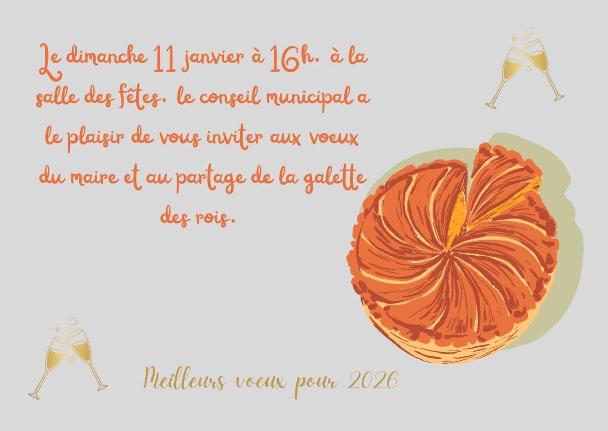 Nous espérons vous retrouver nombreux pour échanger nos voeux, partager le verre de l'amitié, et savourer ensemble la traditionnelle galette.