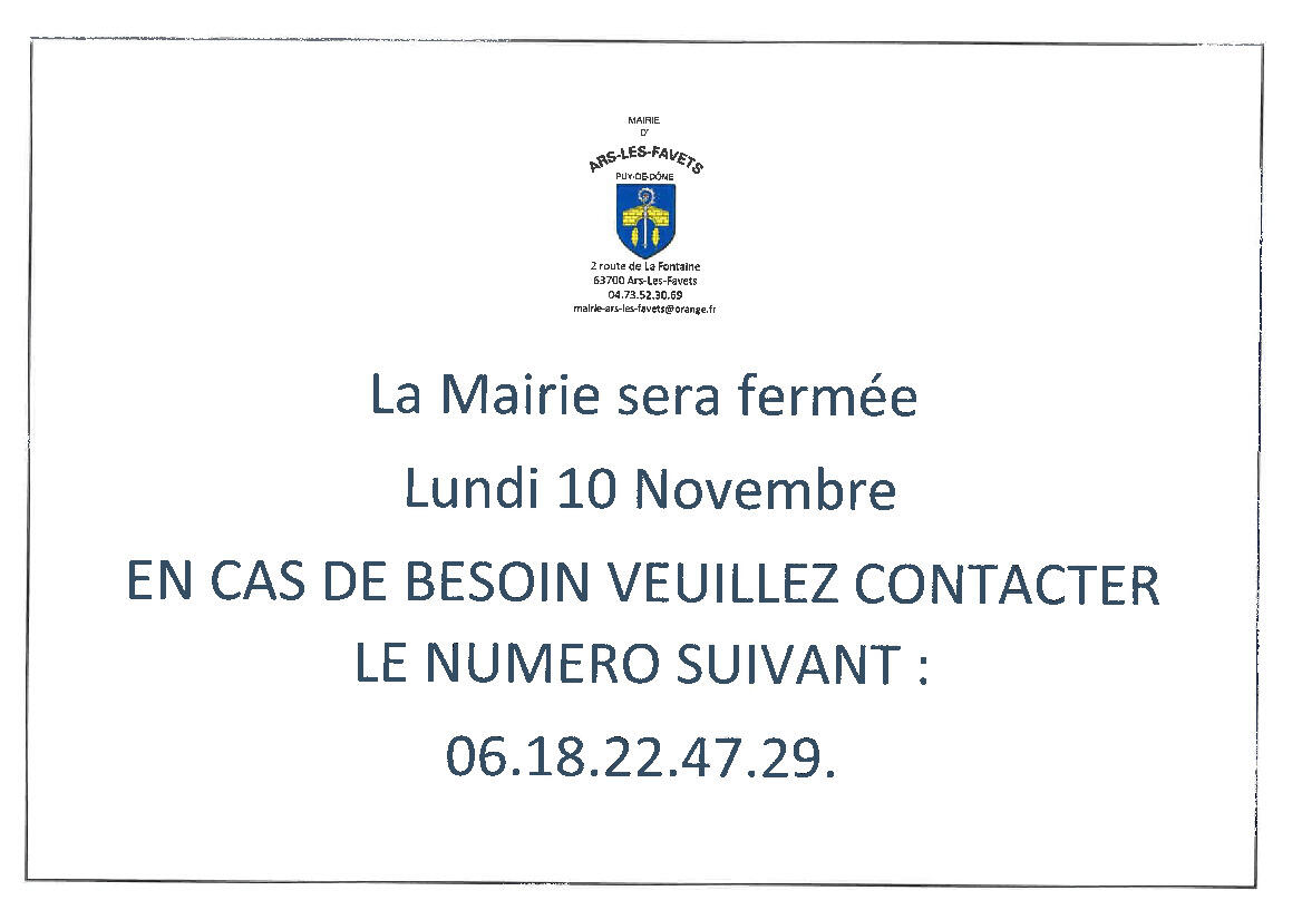 FERMETURE SECRÉTARIAT DE MAIRIE