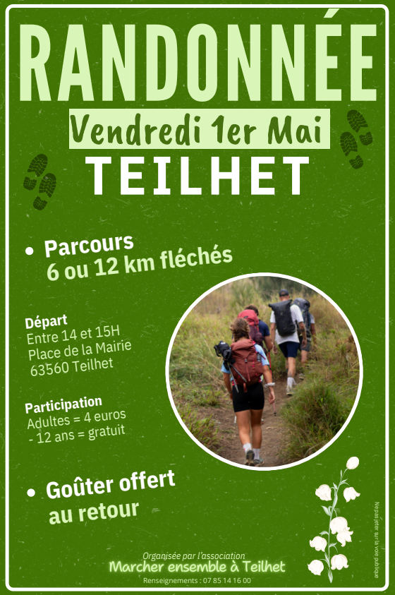 L'association Marcher ensemble à Teilhet organise une randonnée le 1er mai .