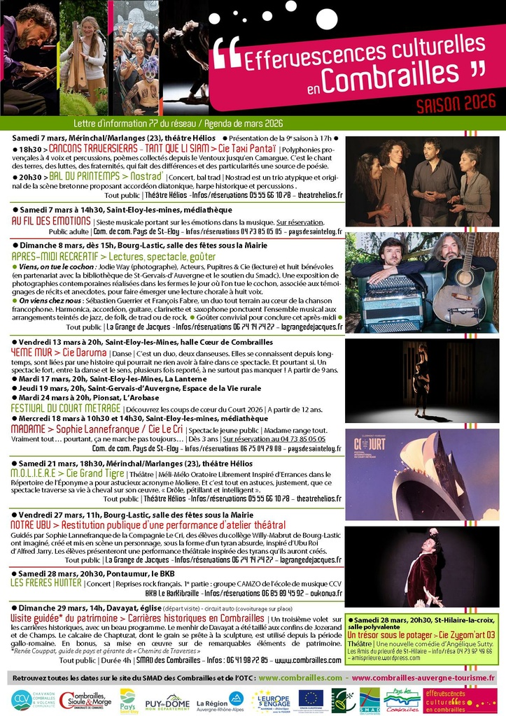 Effervescences culturelles en Combrailles > Newsletter MARS