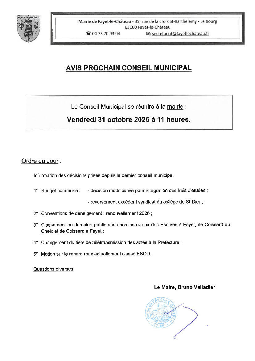 Prochain conseil municipal jeudi 11 décembre 18h30