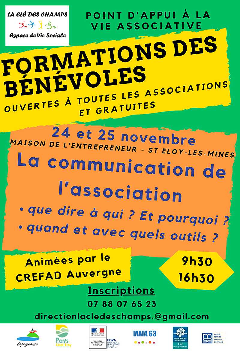Dans le cadre de ses actions en tant que Point d’Appui à la Vie Associative, La Clé des Champs organise des sessions de formations à destination des bénévoles.