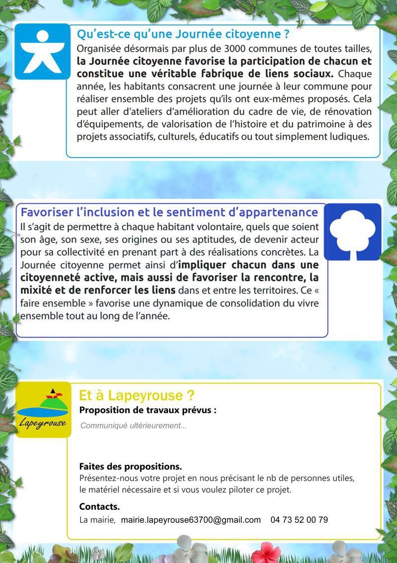 Journée citoyenne. Réservez votre 5 octobre 2024…