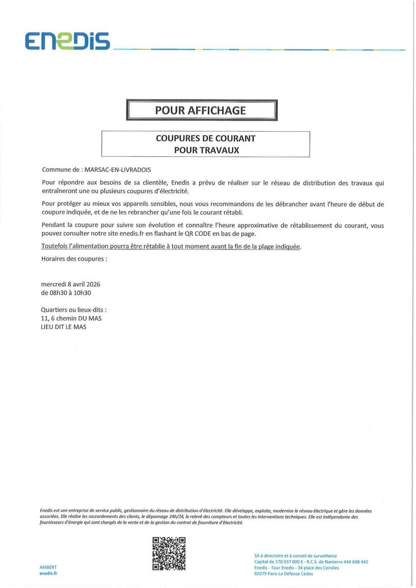 Coupure électricité Le Mas