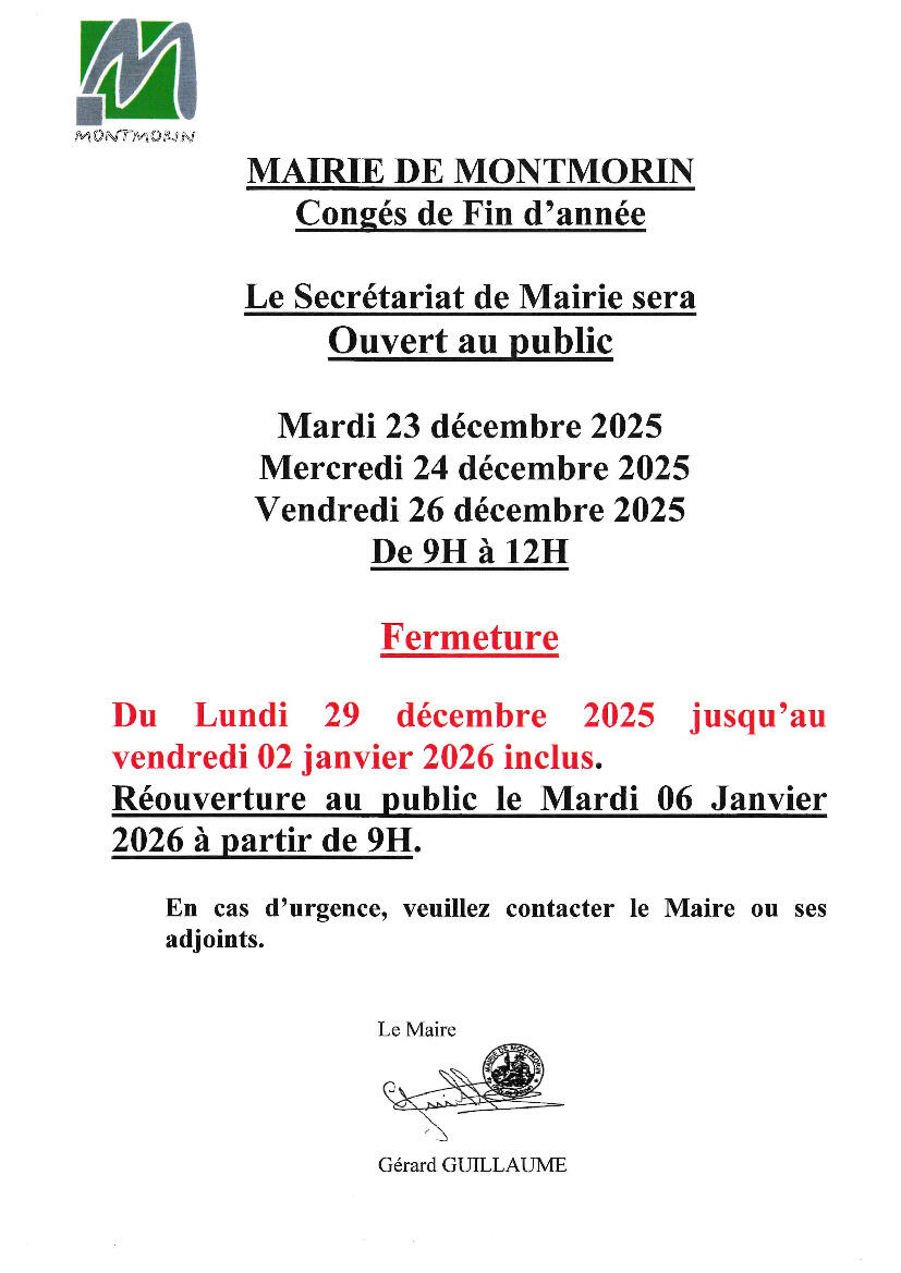 Secrétariat de mairie - fermeture exceptionnelle le 28/11/25