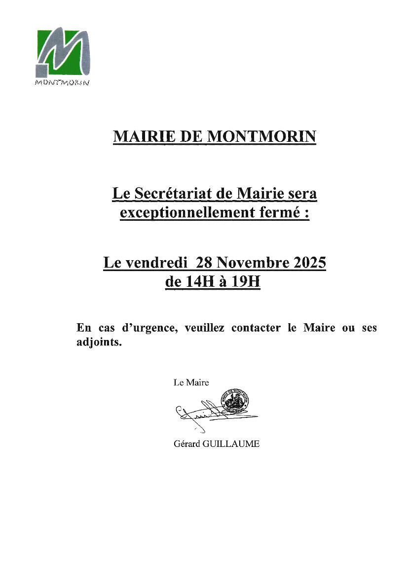 Secrétariat de mairie - fermeture exceptionnelle le 28/11/25