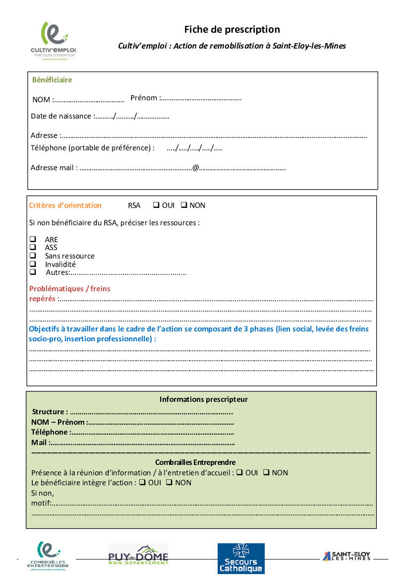 Cette action de remobilisation est destinée aux bénéficiaires du RSA de notre commune et se déroulera chaque lundi et mardi, à la Maison des Associations de Saint-Éloy-les-Mines.