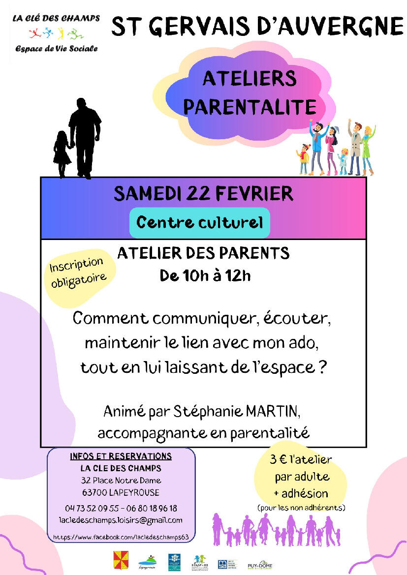 Samedi 22 février un atelier parentalité est programmé à St Gervais d'Auvergne.