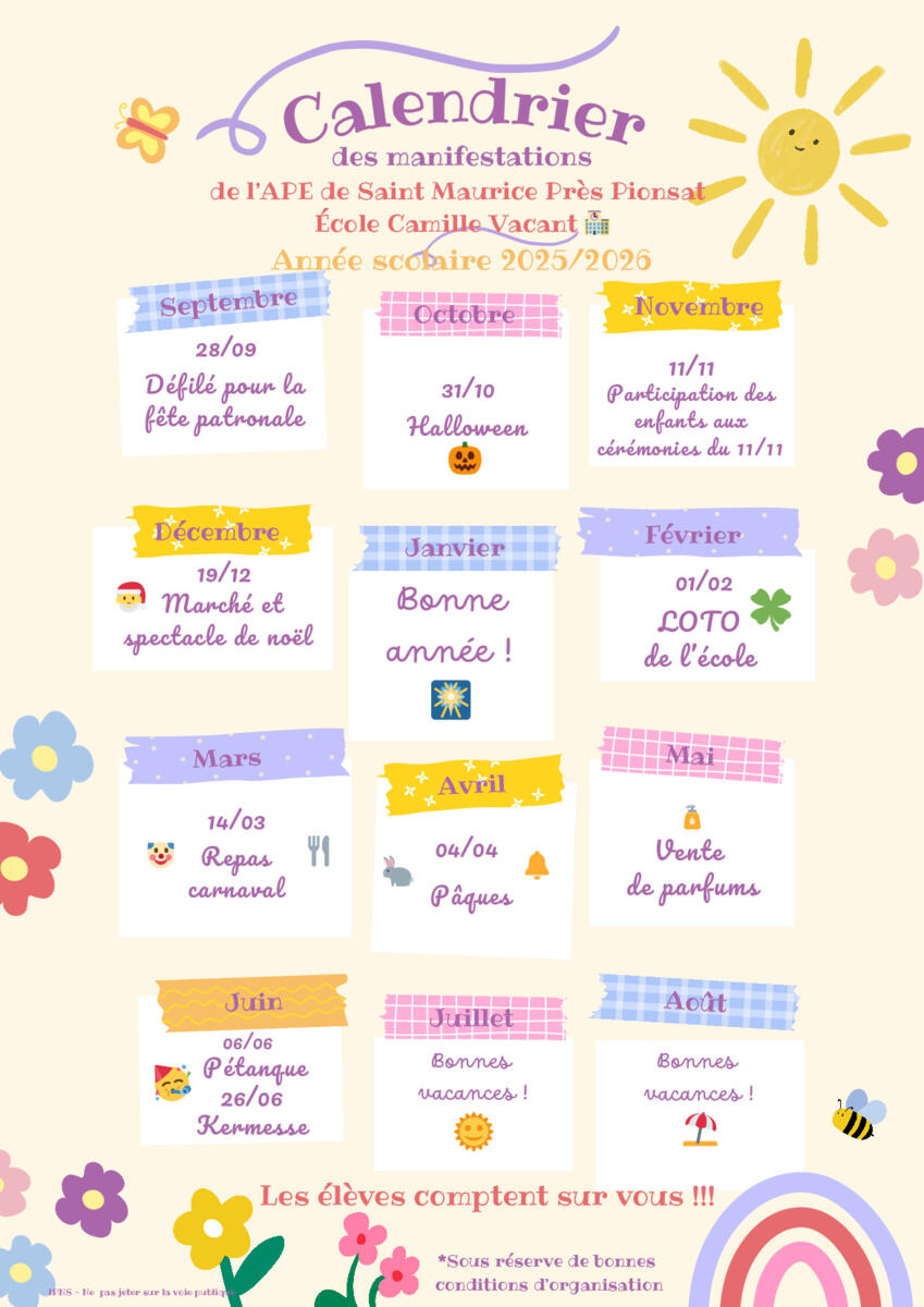 Calendrier des manifestations de l'APE