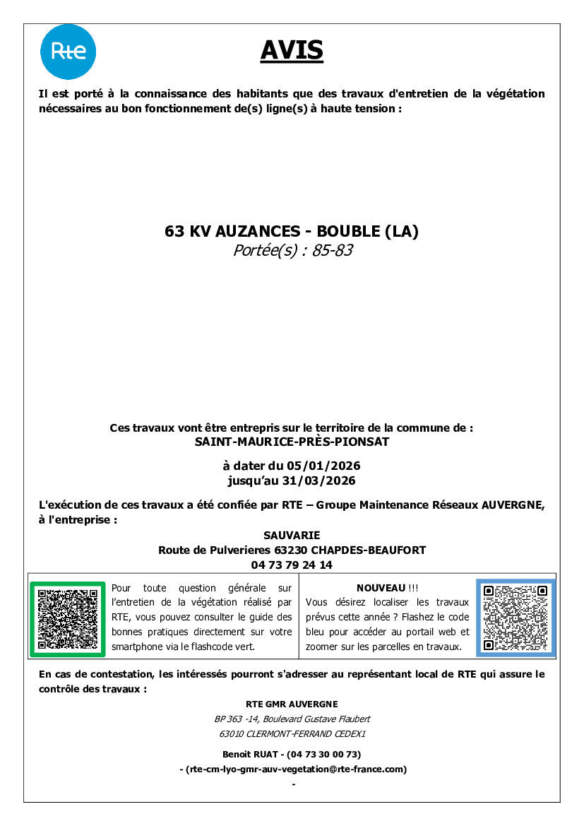 Toute l'actualité de Mairie de Saint-Maurice-prés-Pionsat