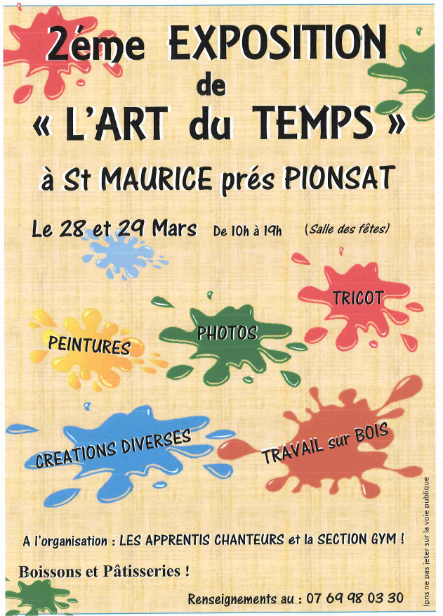 Les Apprentis Chanteurs et la section Gym vous invitent à découvrir la 2ème exposition "L’Art du Temps".