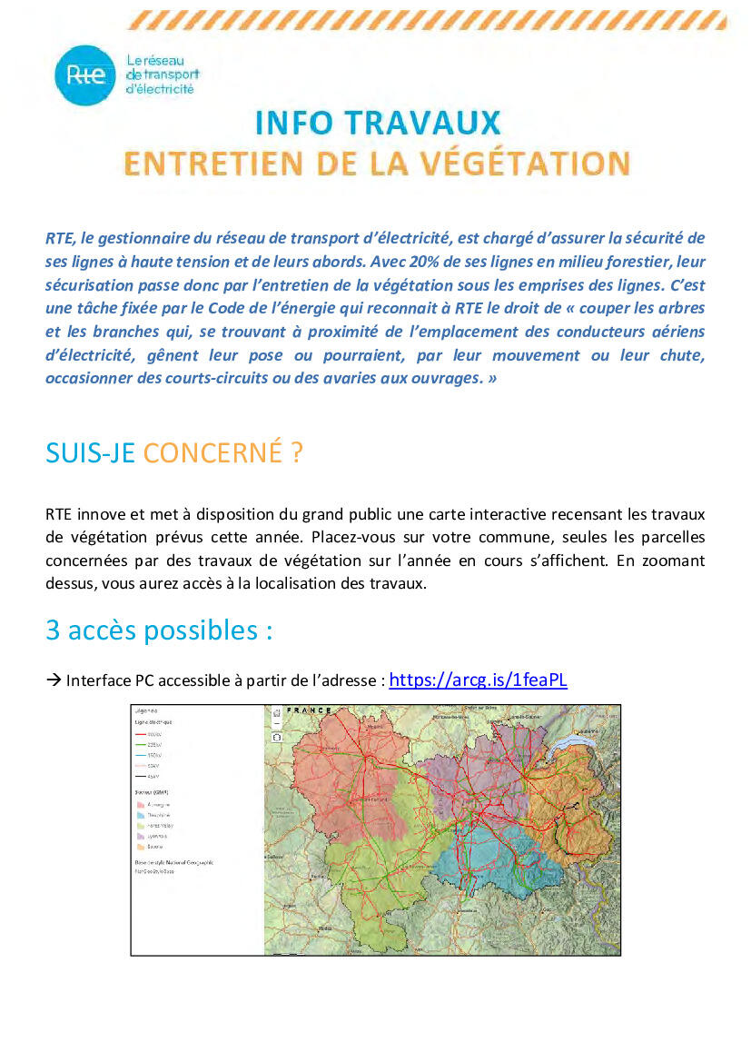 RTE innove et met à disposition du grand public une carte interactive recensant les travaux de végétation prévus cette année pour les consulter et voir quelles parcelles sont concernées.
