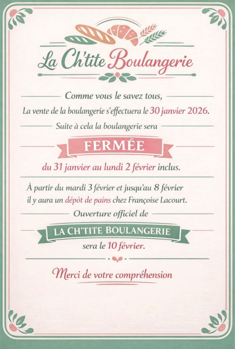 Changement de propriétaire boulangerie