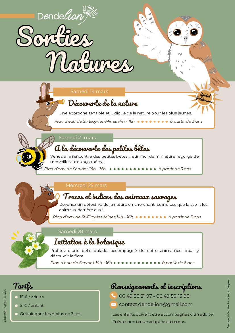 Créée par deux jeunes servantaises, Dendelion propose des animations natures pour tous publics et des outils pédagogiques sur la biodiversité.