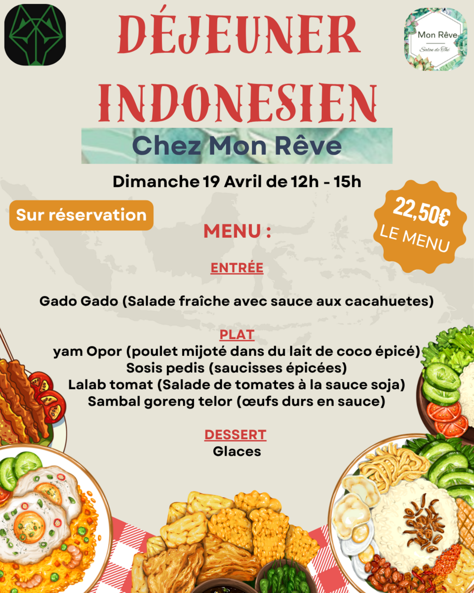 Rejoignez-nous pour un déjeuner aux saveurs d’Indonésie, riche en épices, en couleurs et en gourmandise !