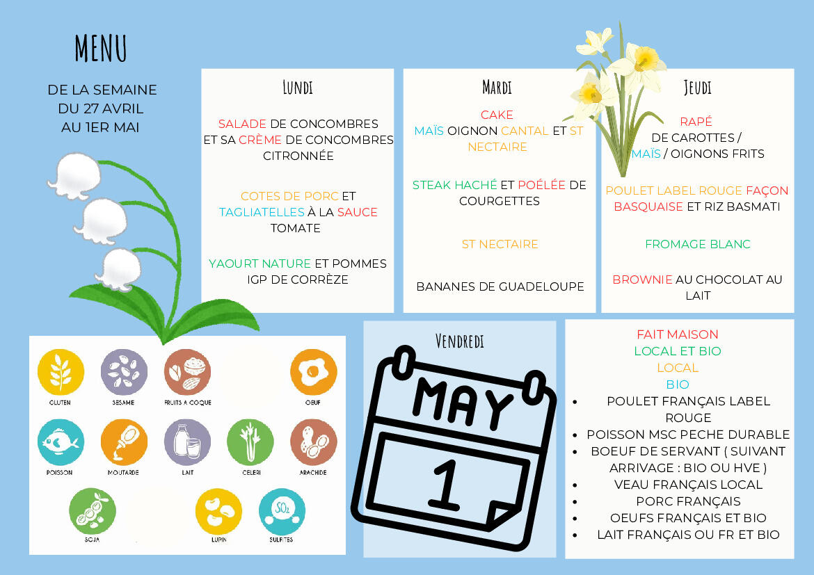 Menus du 27 au 30 avril