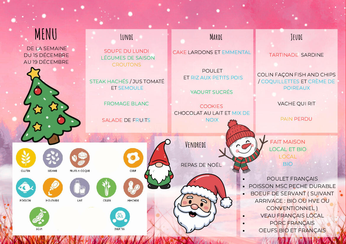Menus de la cantine 15/12/2025 Menus du 15 au 19 décembre Repas de Noël surprise le vendredi 19 décembre !!!