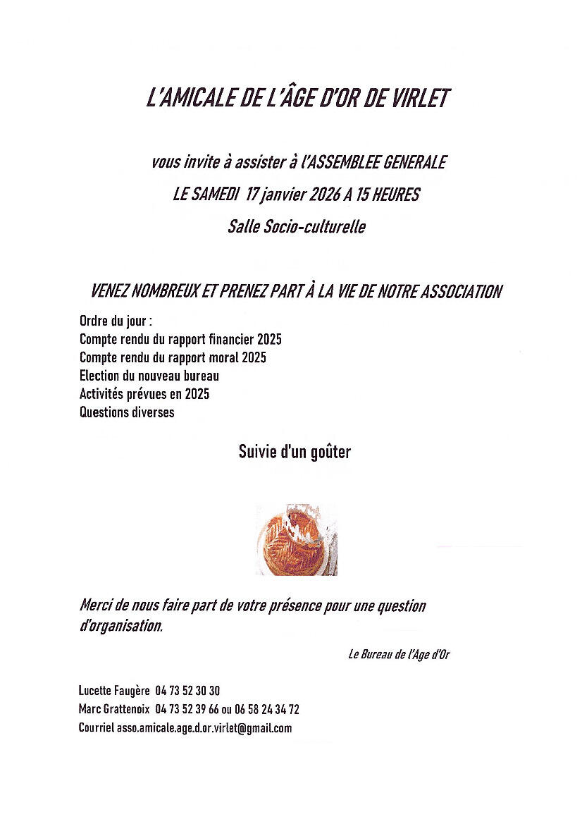 ASSEMBLEE GENERALE DE L'AGE D'OR 17 JANVIER 2026