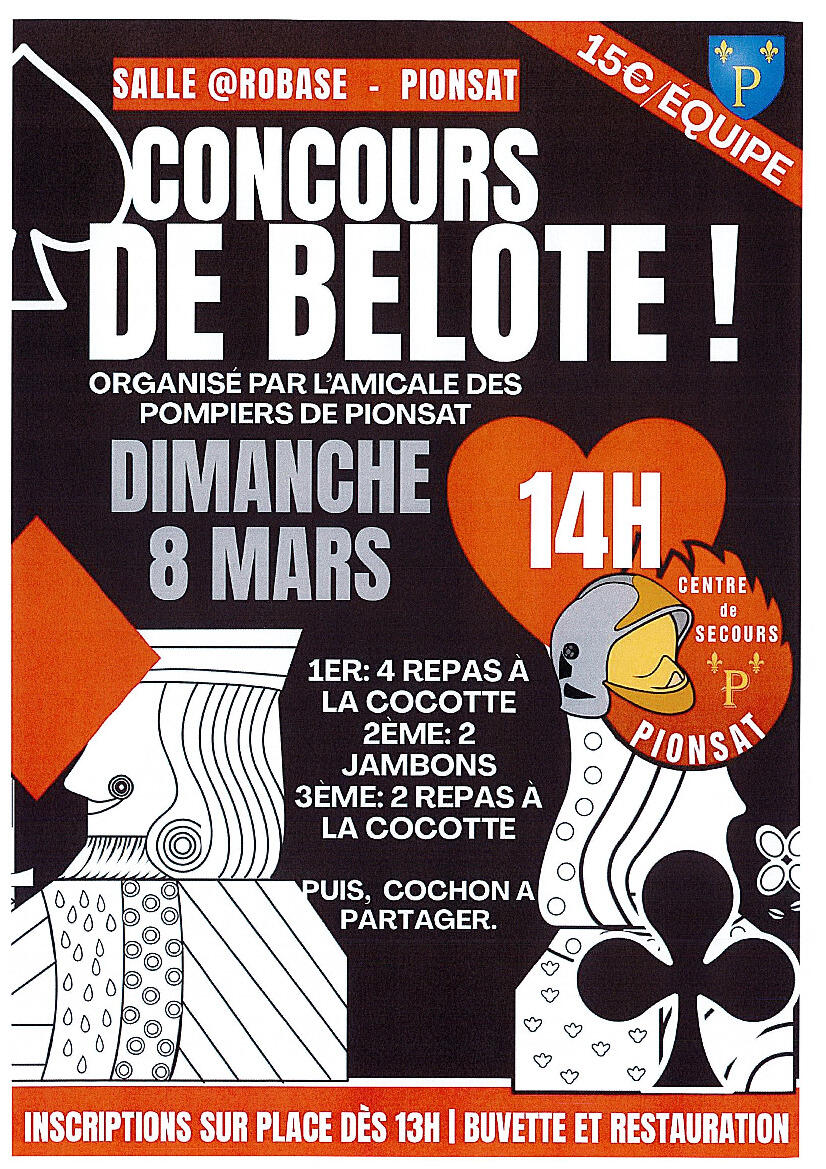 concours de belote à Pionsat le 08/03/2026