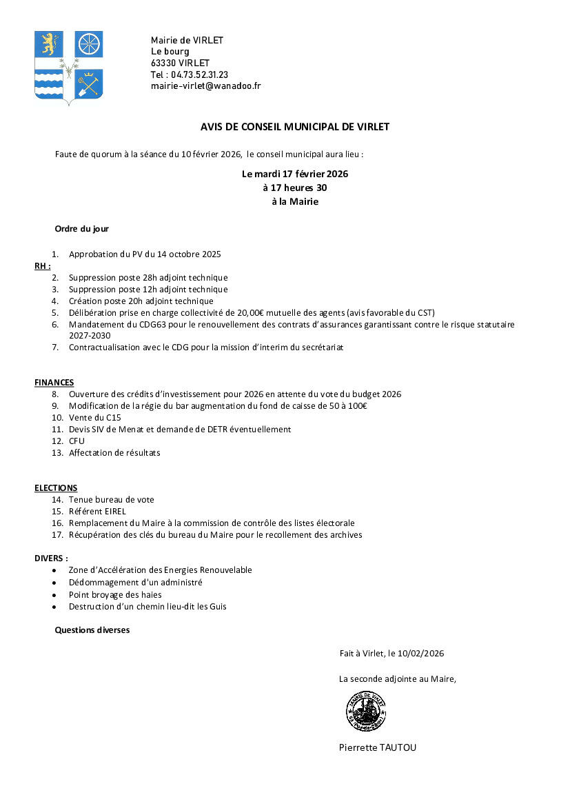Toute l'actualité de Mairie de Virlet