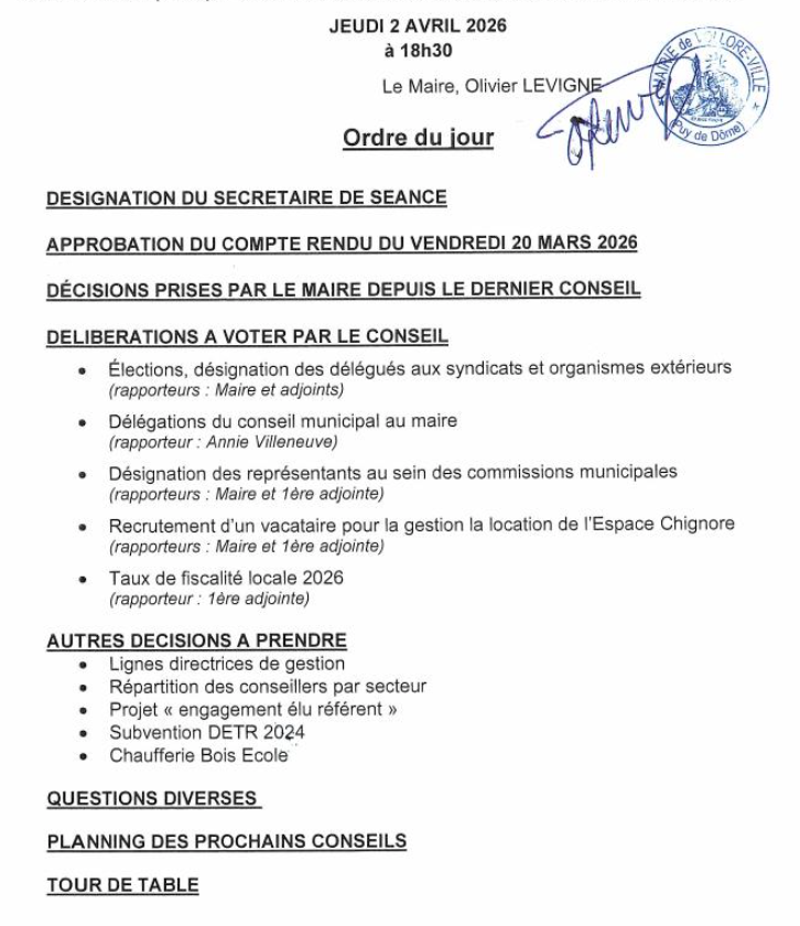 Prochain conseil municipal - 2 avril à 18 heures 30