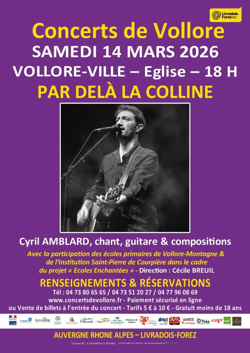 Les enfants des écoles de Vollore Montagne et de l’institution Saint Pierre de Courpière donneront leur concert Par delà la Colline. Ils ont écrit les chants avec la collaboration de Cyril Amblard qui a les également mis en musique. Ils seront dirigés par Cécile Breuil