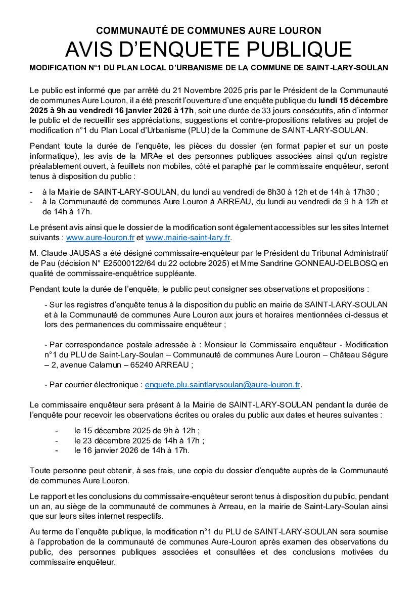 Toute l'actualité de Mairie de Saint-Lary-Soulan