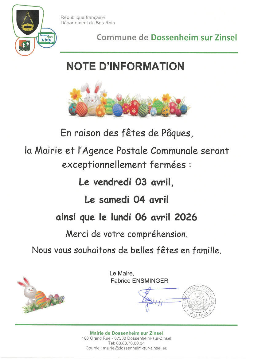 Toute l'actualité de Mairie de Dossenheim-sur-Zinsel