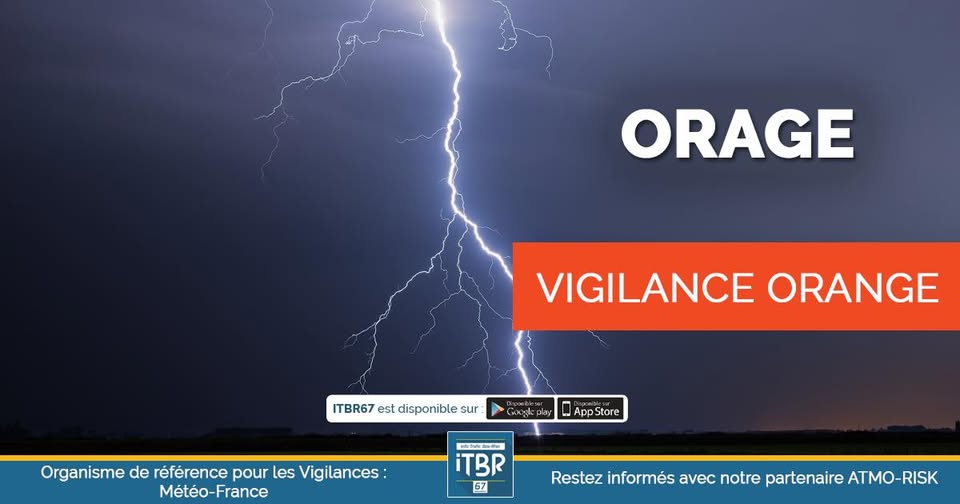 Le département du Bas-Rhin est placé en Vigilance Orange « Orage » par Météo-France ce dimanche 20 juillet 2025, entre 13h et 20h.
