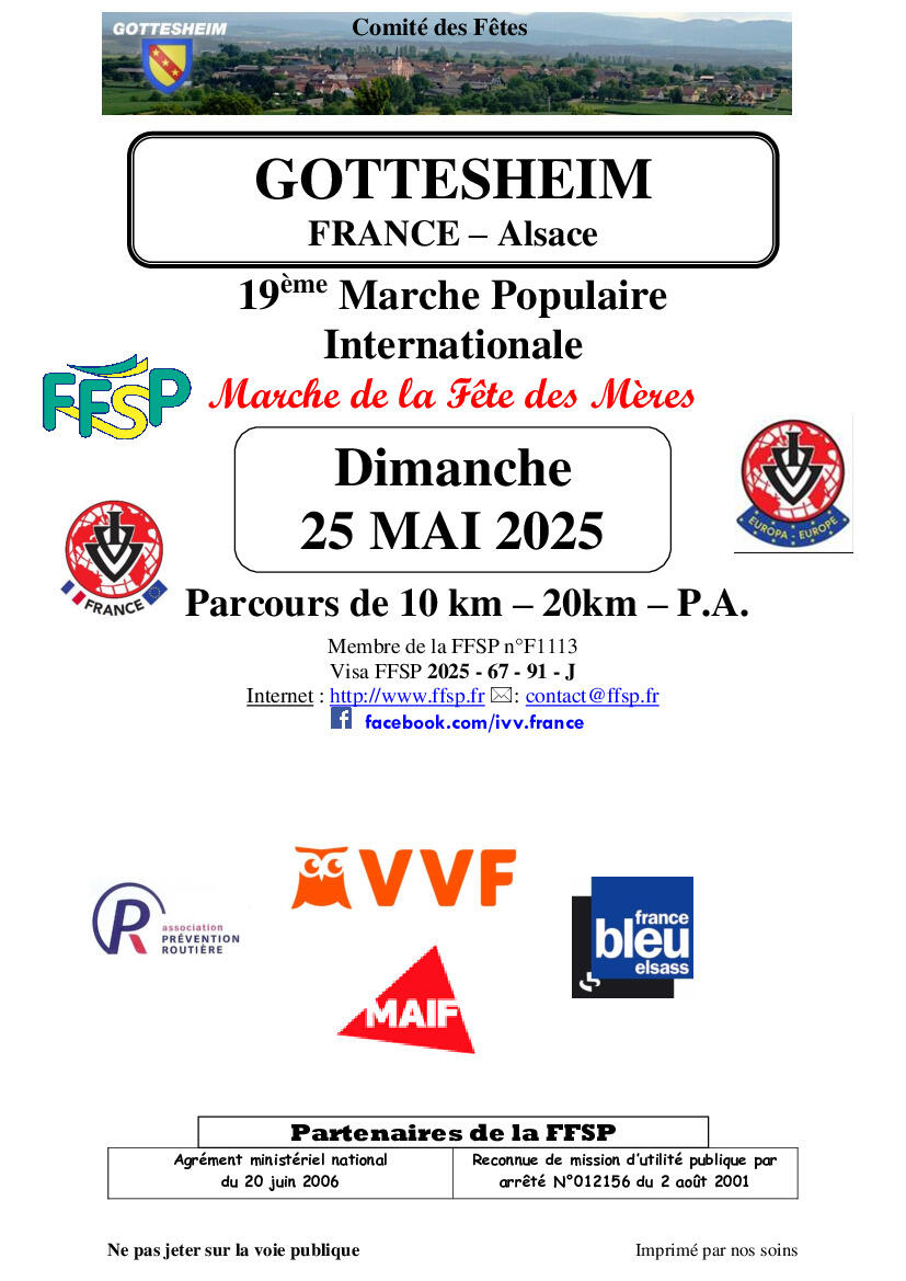Venez nombreux à la Marche de la Fête des Mères organisée par le Comité des Fêtes.
