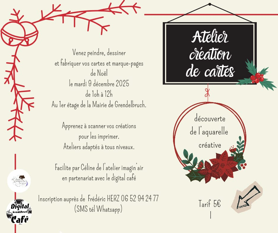 Atelier création de cartes pour Noël - mardi 9 déc. 10h-12h