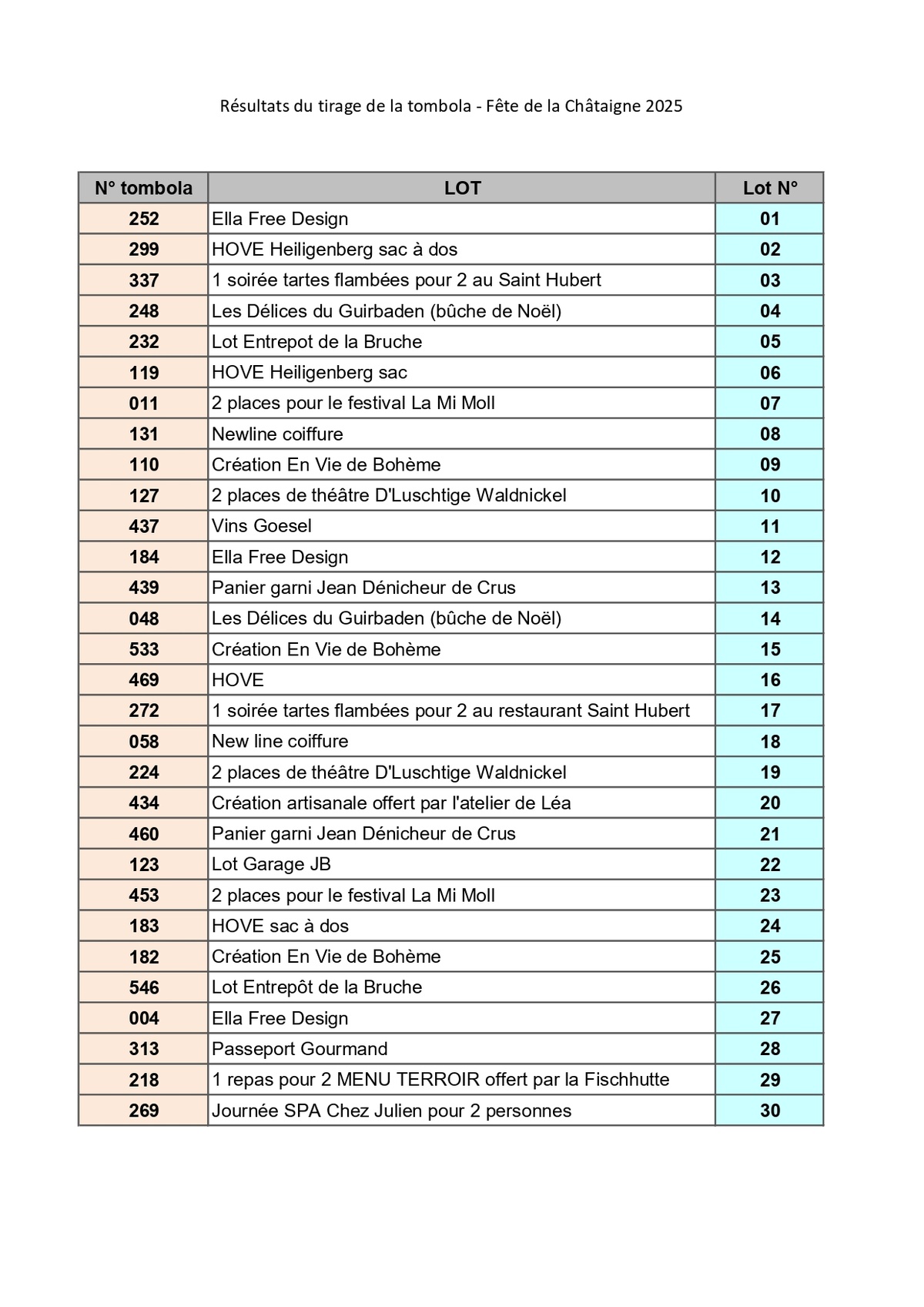 Pour retirer votre lot, contactez le COMITE DES FETES par mail.Remise du lot sur présentation du livret.