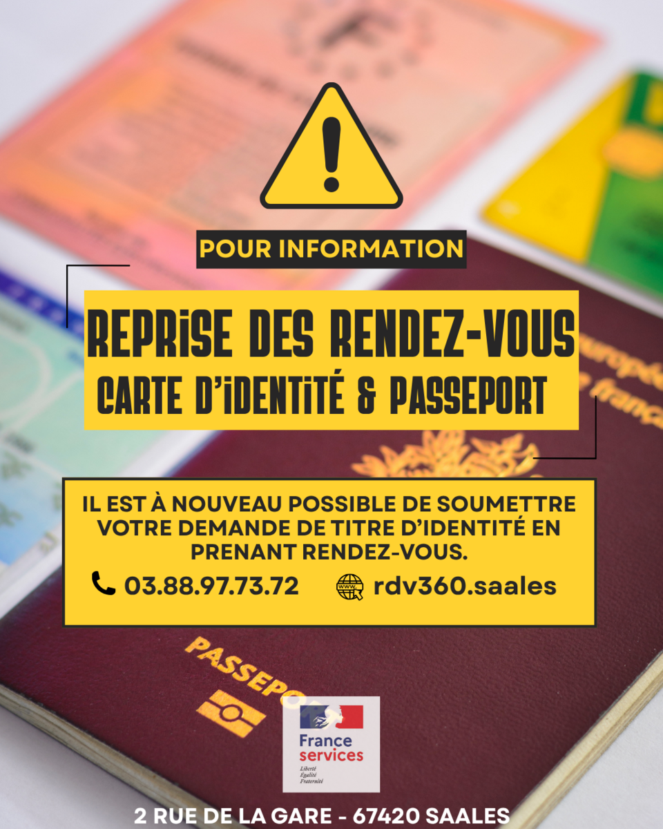 REPRISE DES RENDEZ-VOUS CNI/PASSPORTS
