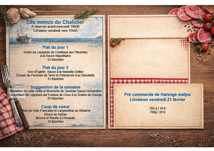 Les plats de la semaine et menu saint valention