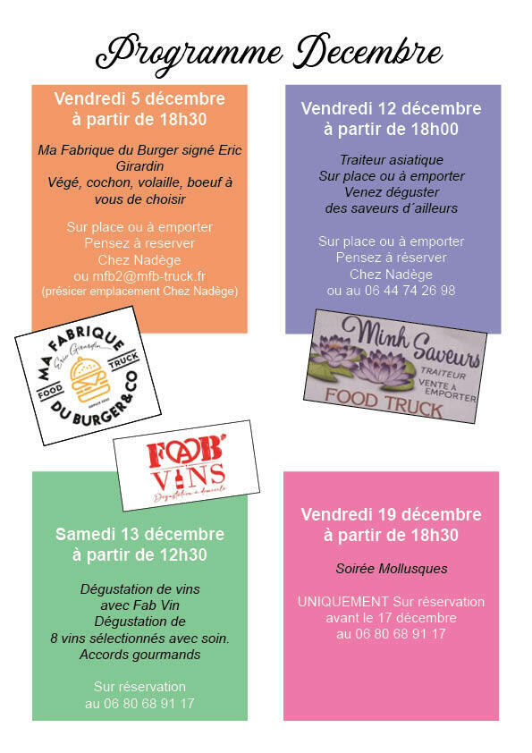 Samedi 13 décembre dégustation de vin sur réservation, 15 euros par personne. 8 vins avec les petites douceurs (macarons foie gras, saumons etc)