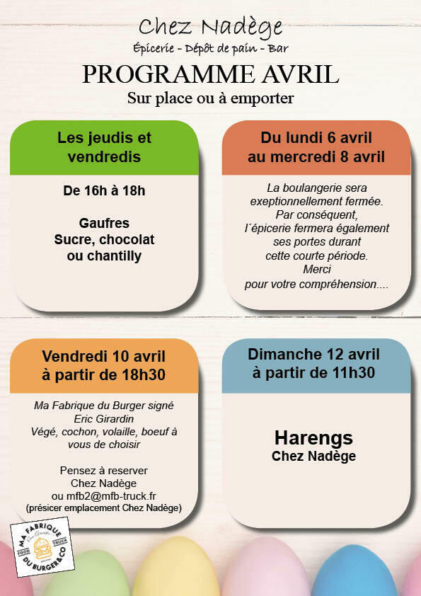 Avec 2 jours d´avance voici le programme du mois d´avril.