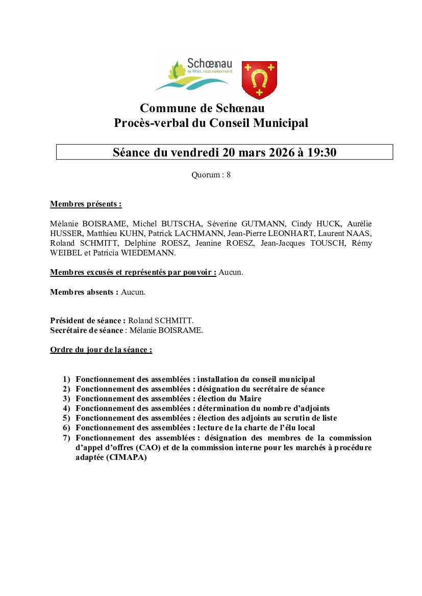 PV conseil municipal du 20 mars 2026