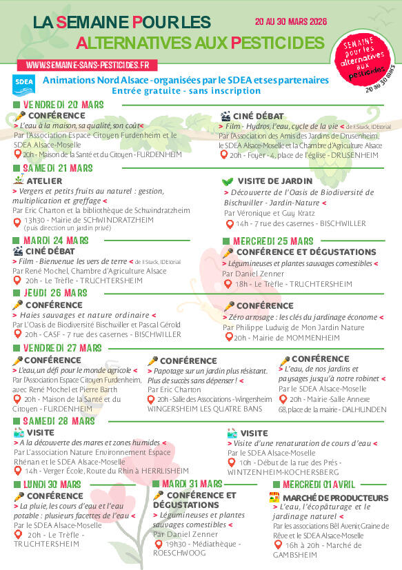 Dans le cadre de la Semaine des Alternatives aux Pesticides, les Missions Eau du SDEA proposent plusieurs animations gratuites et ouvertes à tous.