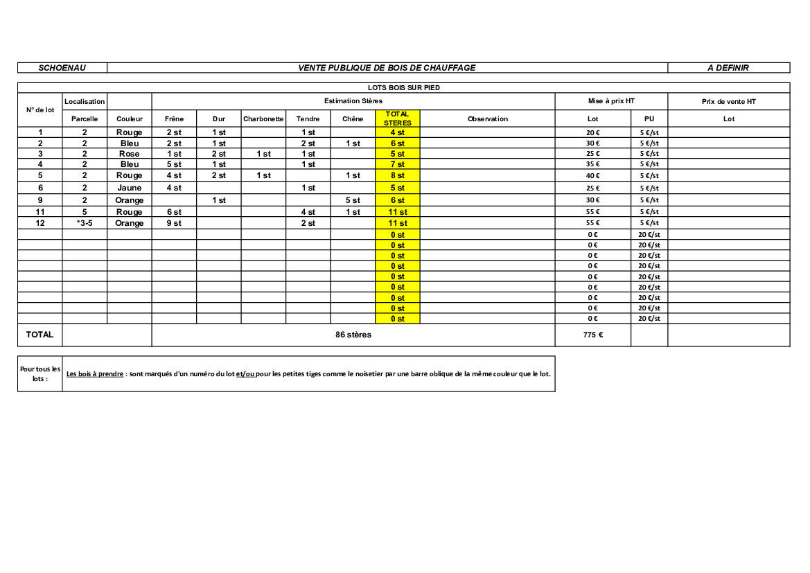 Vente De Lots De Bois 05/03/2026 La commune vend les lots de bois figurant dans le document joint. Pour les personnes intéressées, merci de vous adresser directement à la mairie.