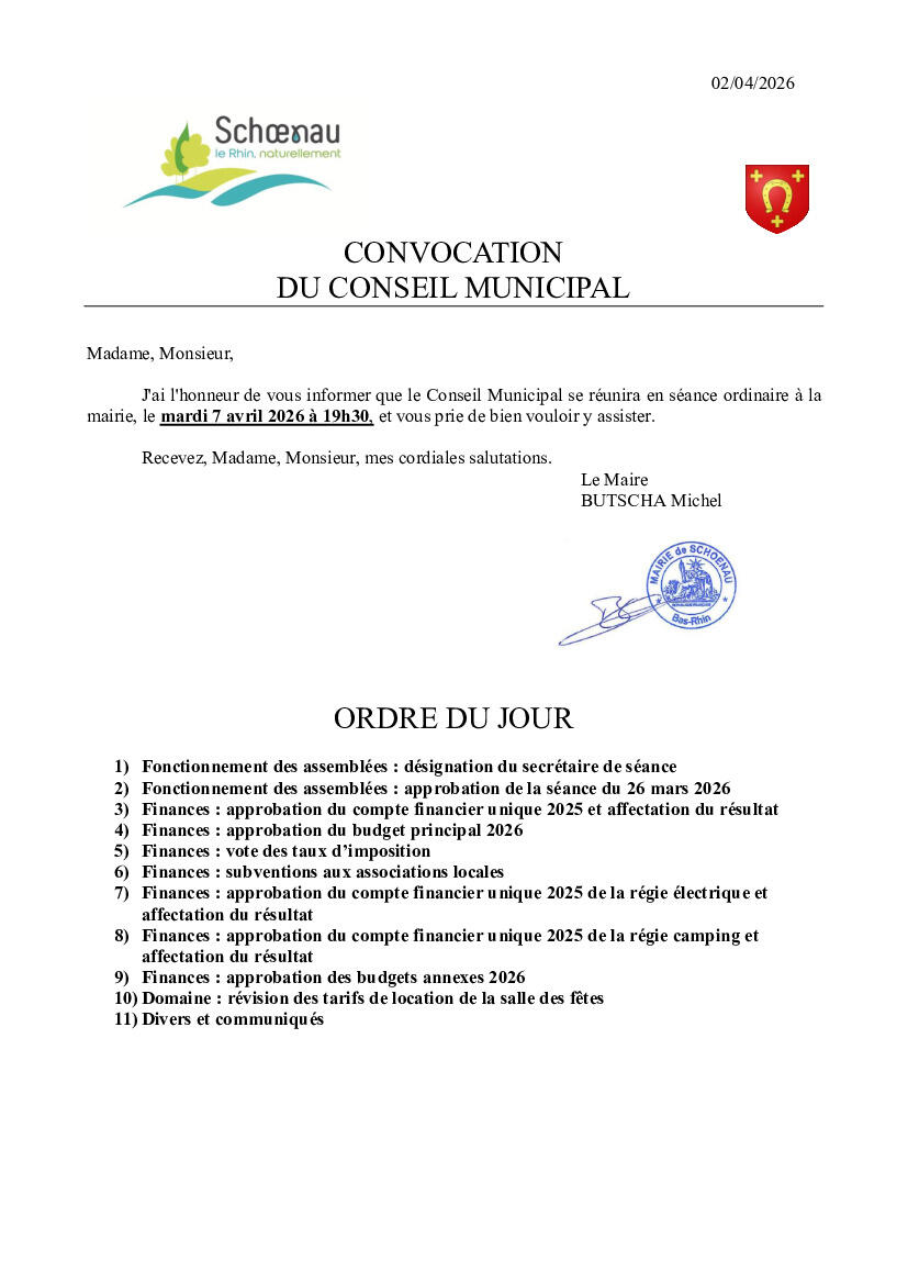 Réunion du conseil municipal le 7 avril à 19h30 02/04/2026 Le conseil municipal se réunira en séance ordinaire le mardi 7 avril à 19h30.