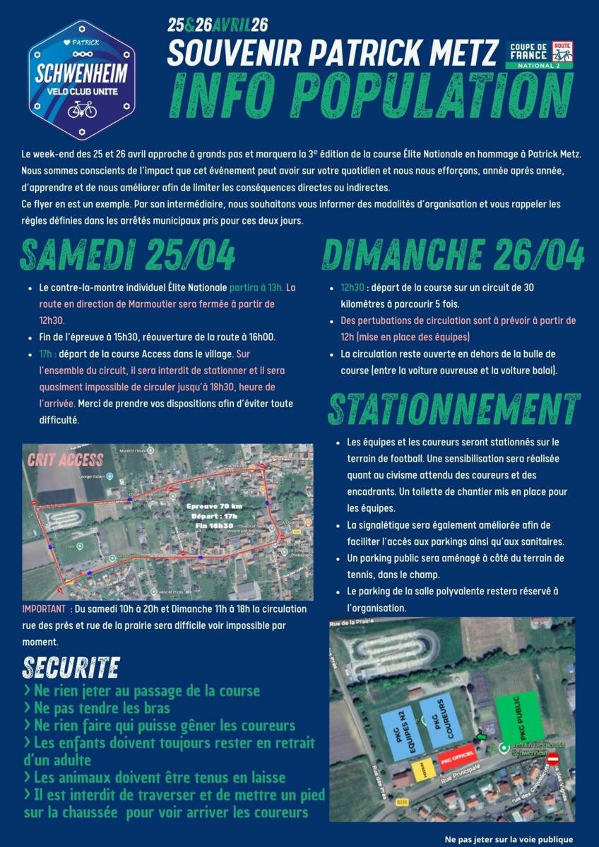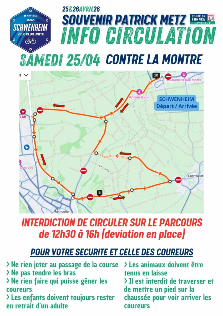 Courses cycliste - information circulation et stationnement 20/04/2026 Plus d'informations sur les courses cyclistes des 25 et 26 avril 2026