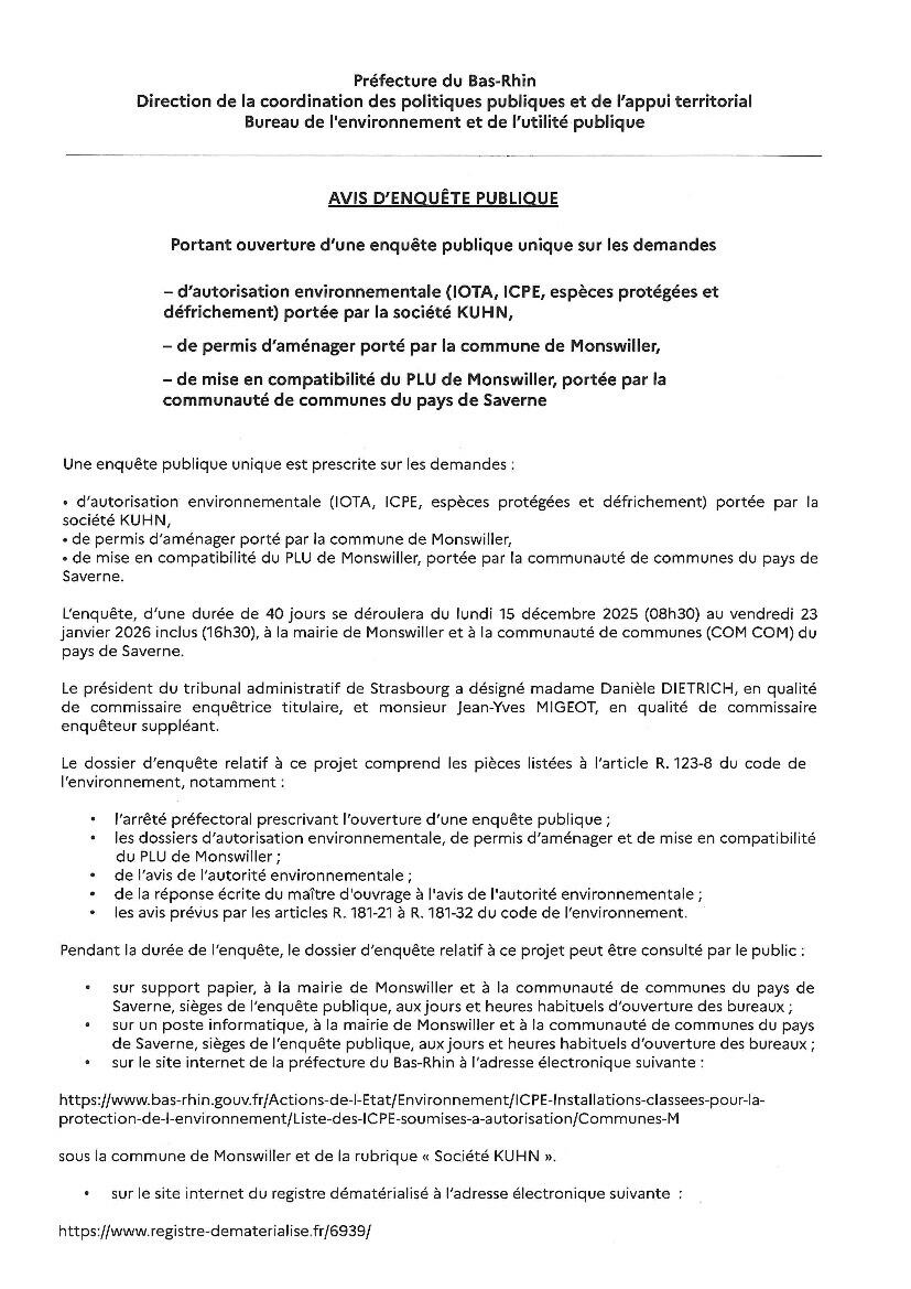 Préfecture du Bas-Rhin - Avis d'enquête publique