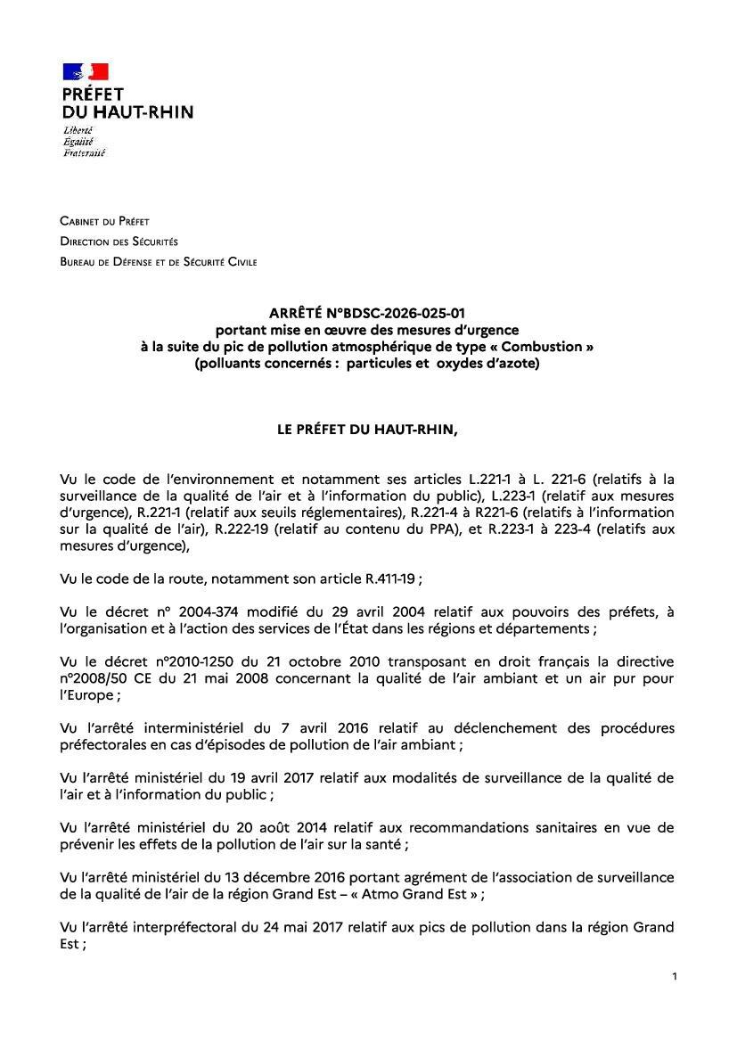 Dans ce cadre, le préfet du Haut-Rhin a décidé la mise en œuvre de mesures d'urgence à compter de ce lundi 26 janvier 2026 à 00h00.