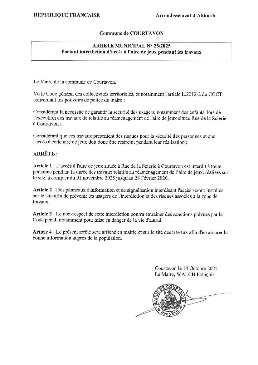 ARRETE INTERDICTION D'ACCES AIRE DE JEUX A EFFET DU 01/11/25