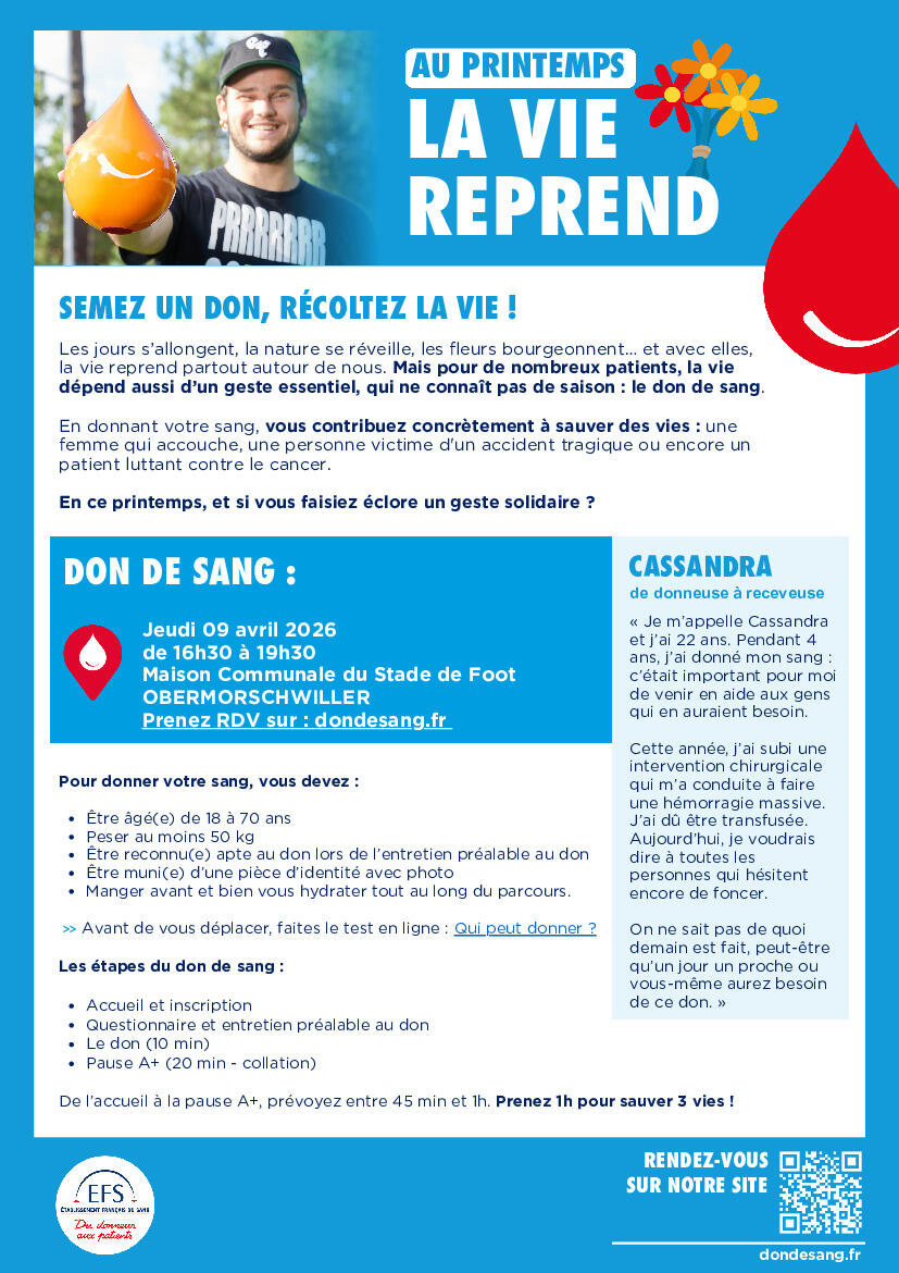 📢Don du sang à Obermorschwiller - jeudi 9 avril