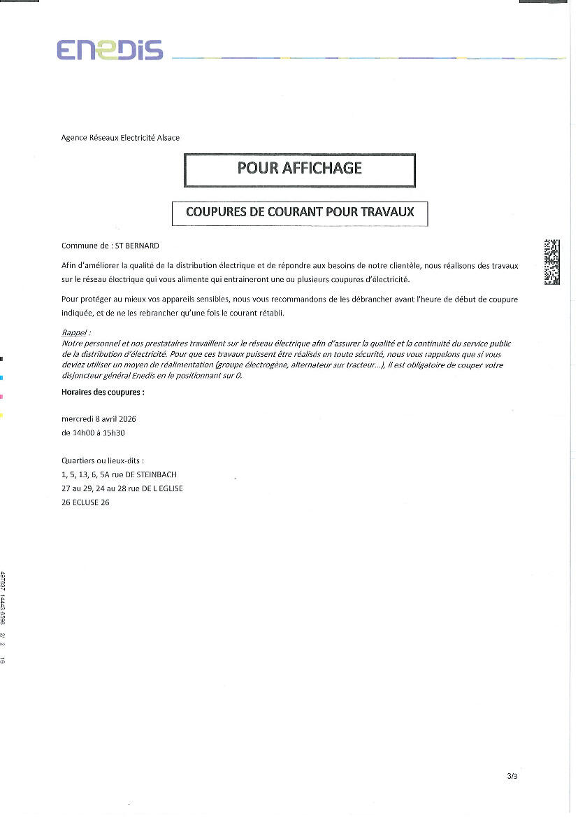 Coupures de courant pour travaux