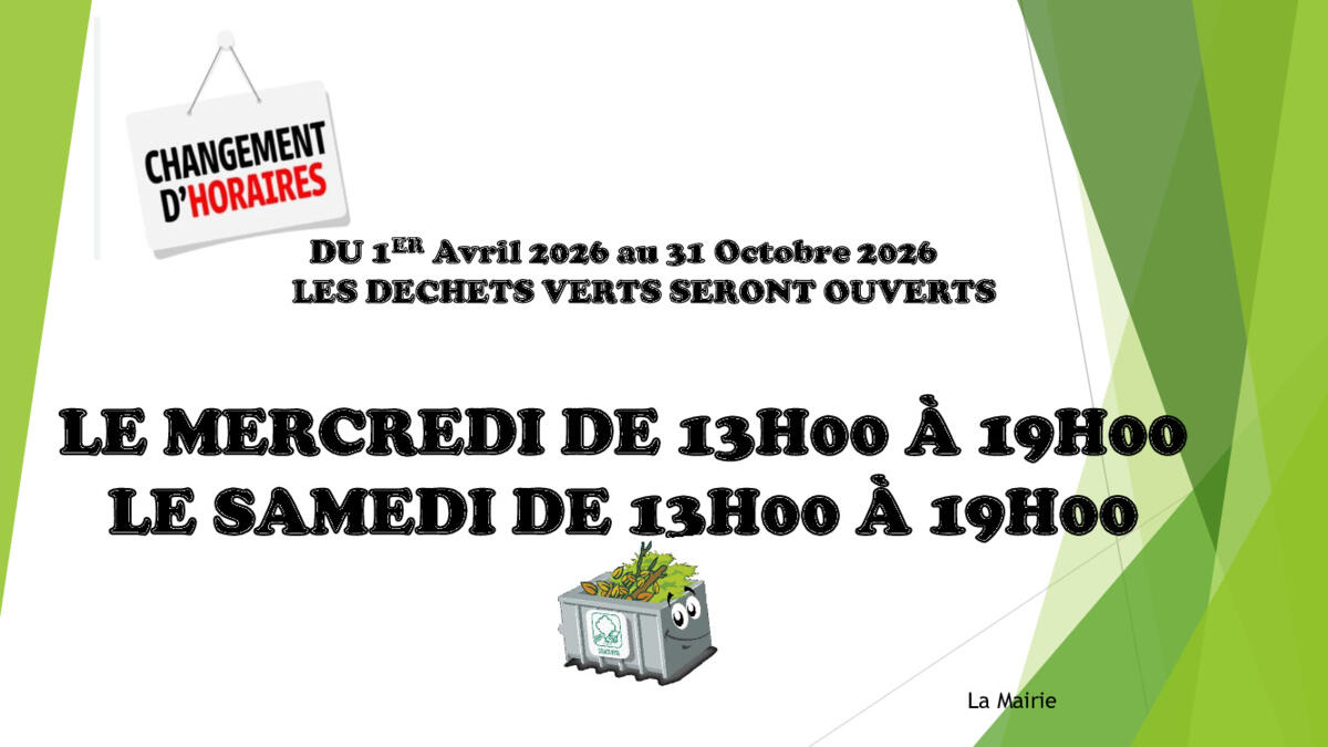 NOUVEAUX HORAIRES DES DECHETS VERTS