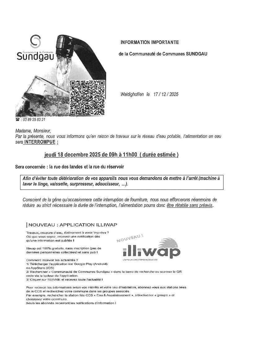Votre mairie / Actualités / Information COMCOM SUNDGAU - COUPURE D'EAU💦