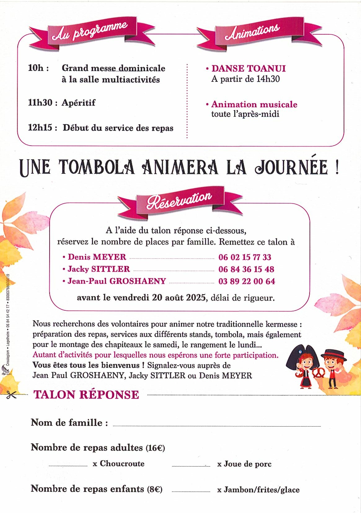 Le conseil de fabrique a le plaisir de vous inviter à leur traditionnelle kermesse paroissiale qui se déroulera le 31 août 2025